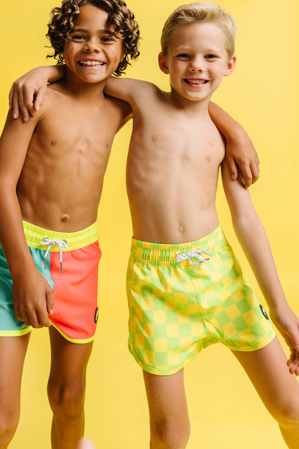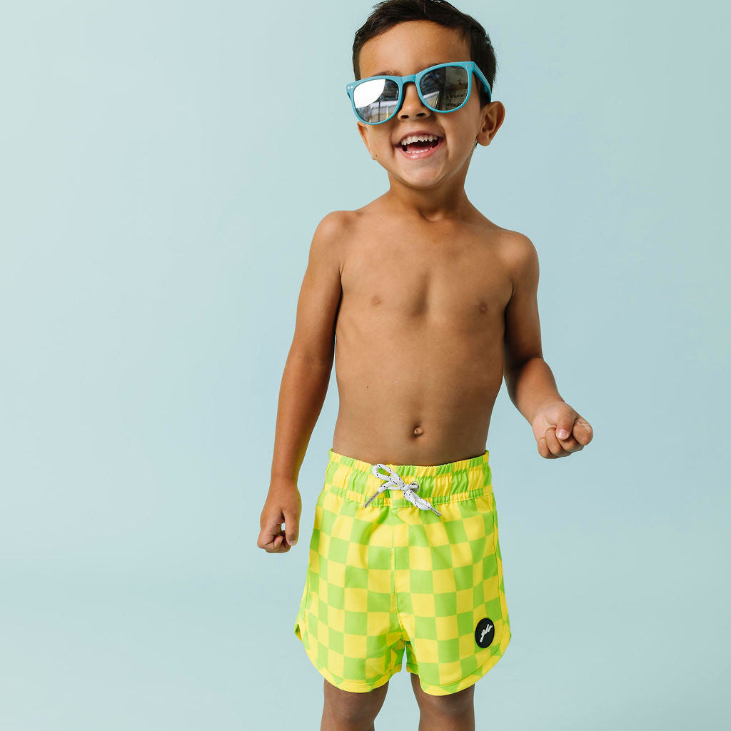 Designed for comfort, style, and high visibility, this suit is made from a premium 90% polyester, 10% spandex blend—giving it the perfect amount of stretch for active kids on the move. The quick-dry fabric keeps them comfortable in and out of the water. The functional drawstring ensures a secure fit, no matter how much they splash and play. These suits run true to size. You can follow our size chart within our main menu tab (Please do!) and decide to size up or down based on your child's percentiles if they are between sizes. These suits are machine washable (avoid extreme hot temps) and we recommend air drying. Now get ready to dive in and GLO!