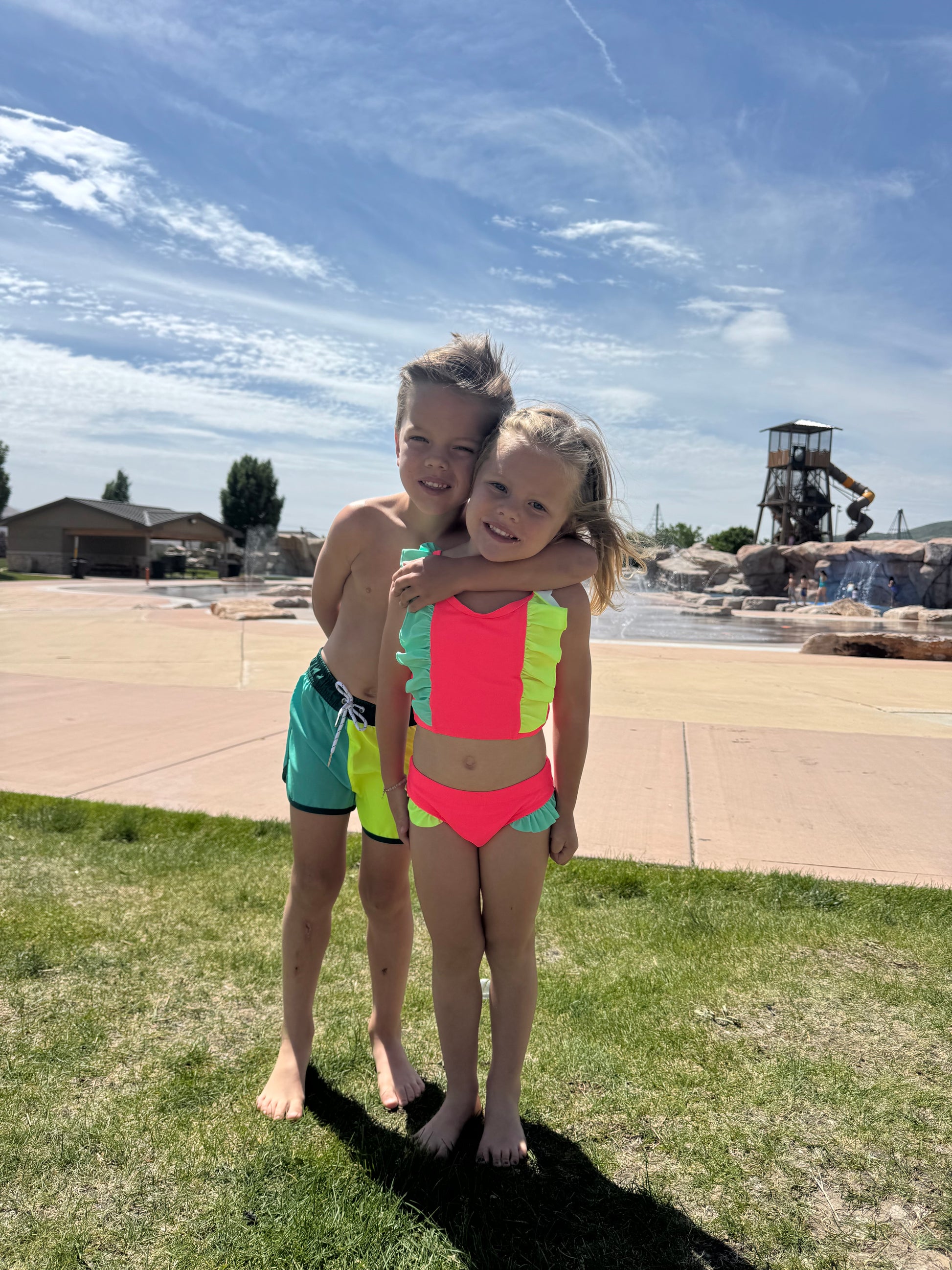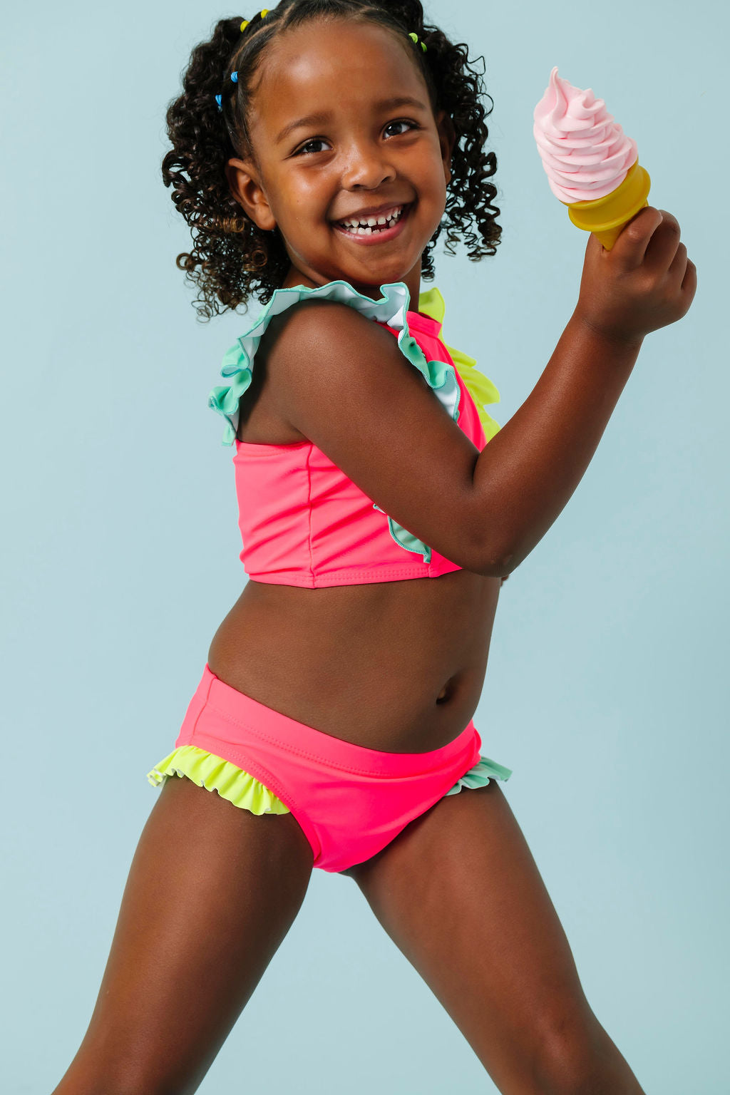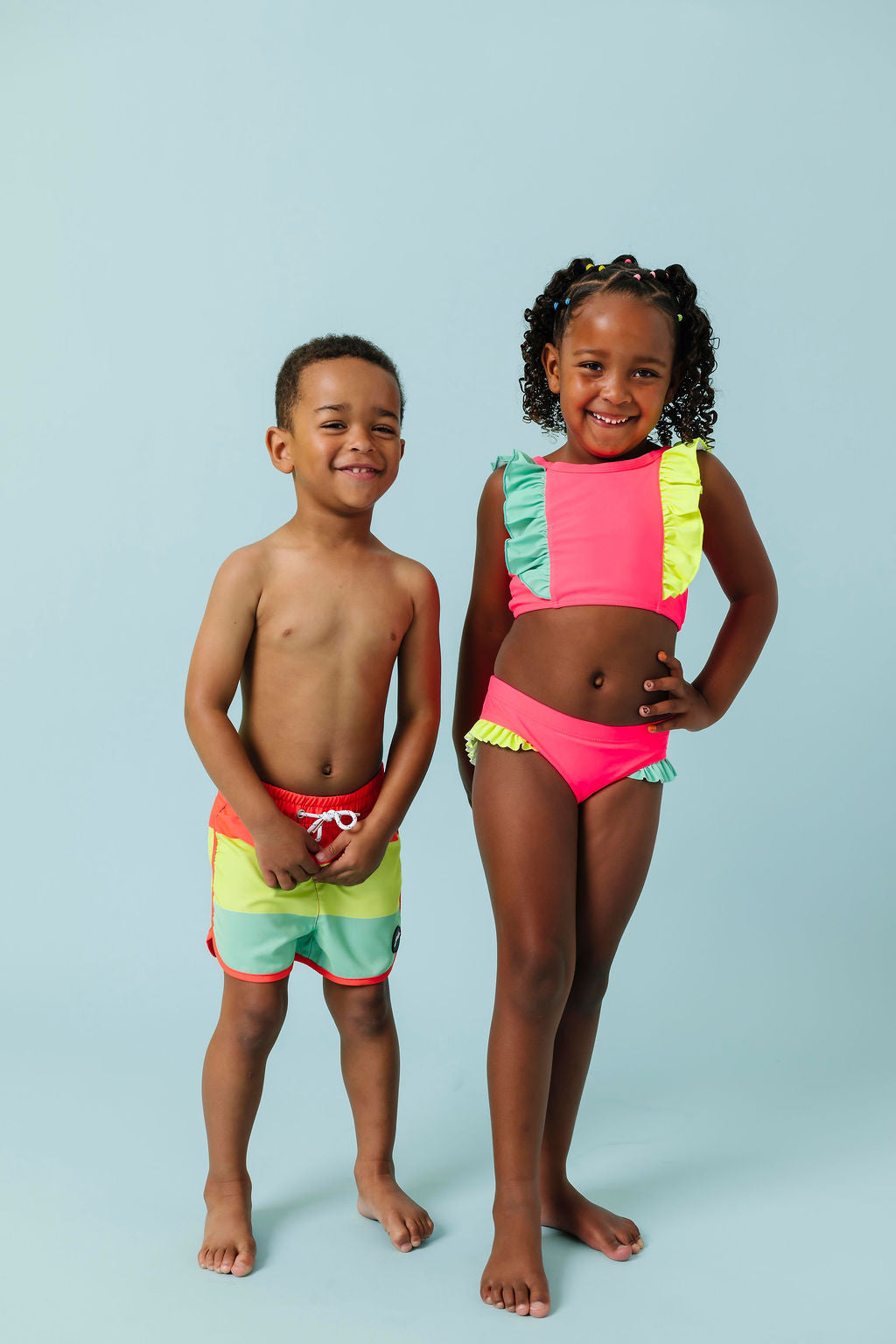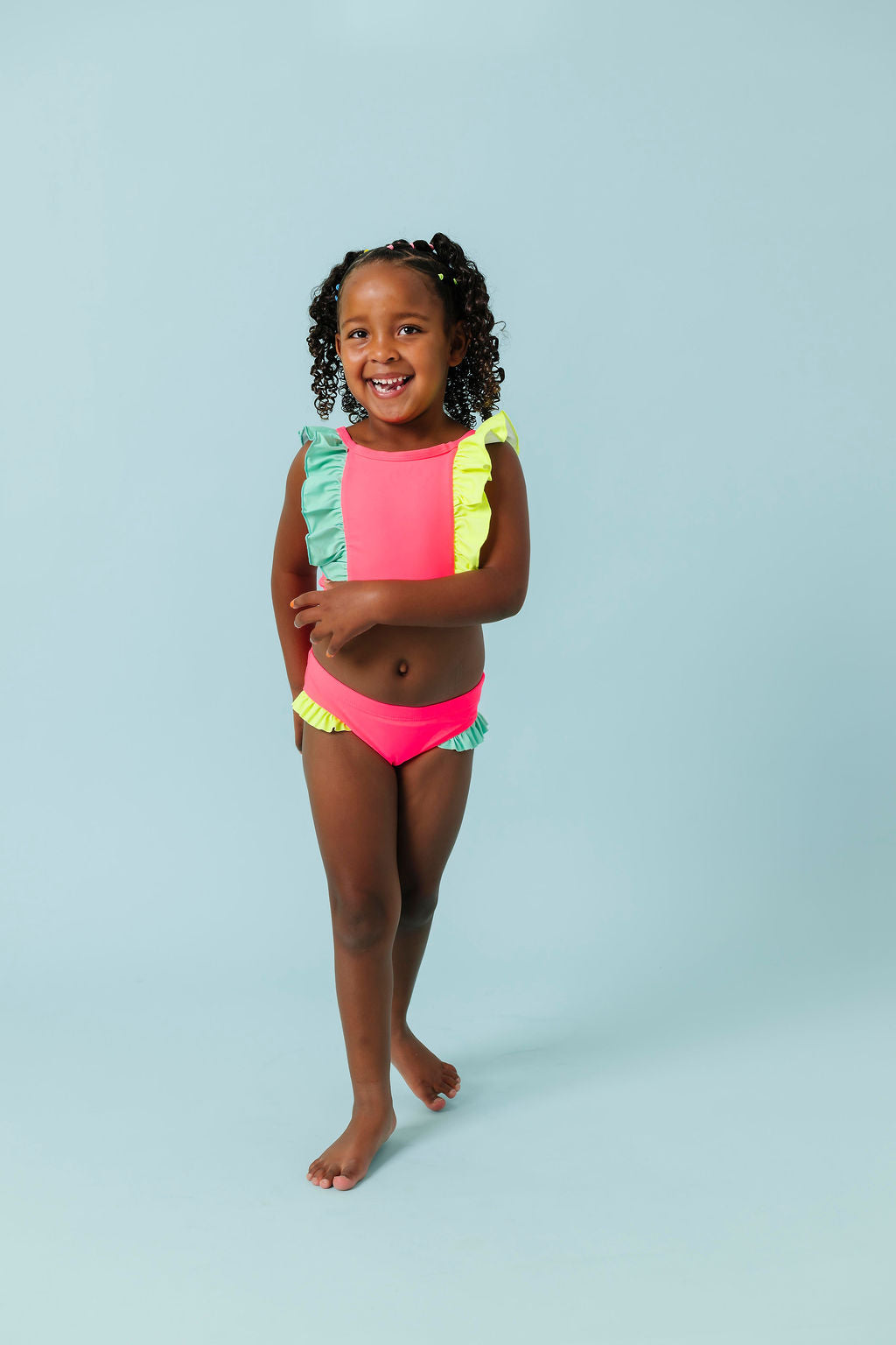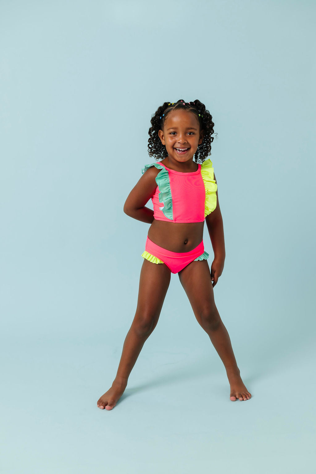 *This suit matches our limelight rash guard best, but is also cute paired with the electric green