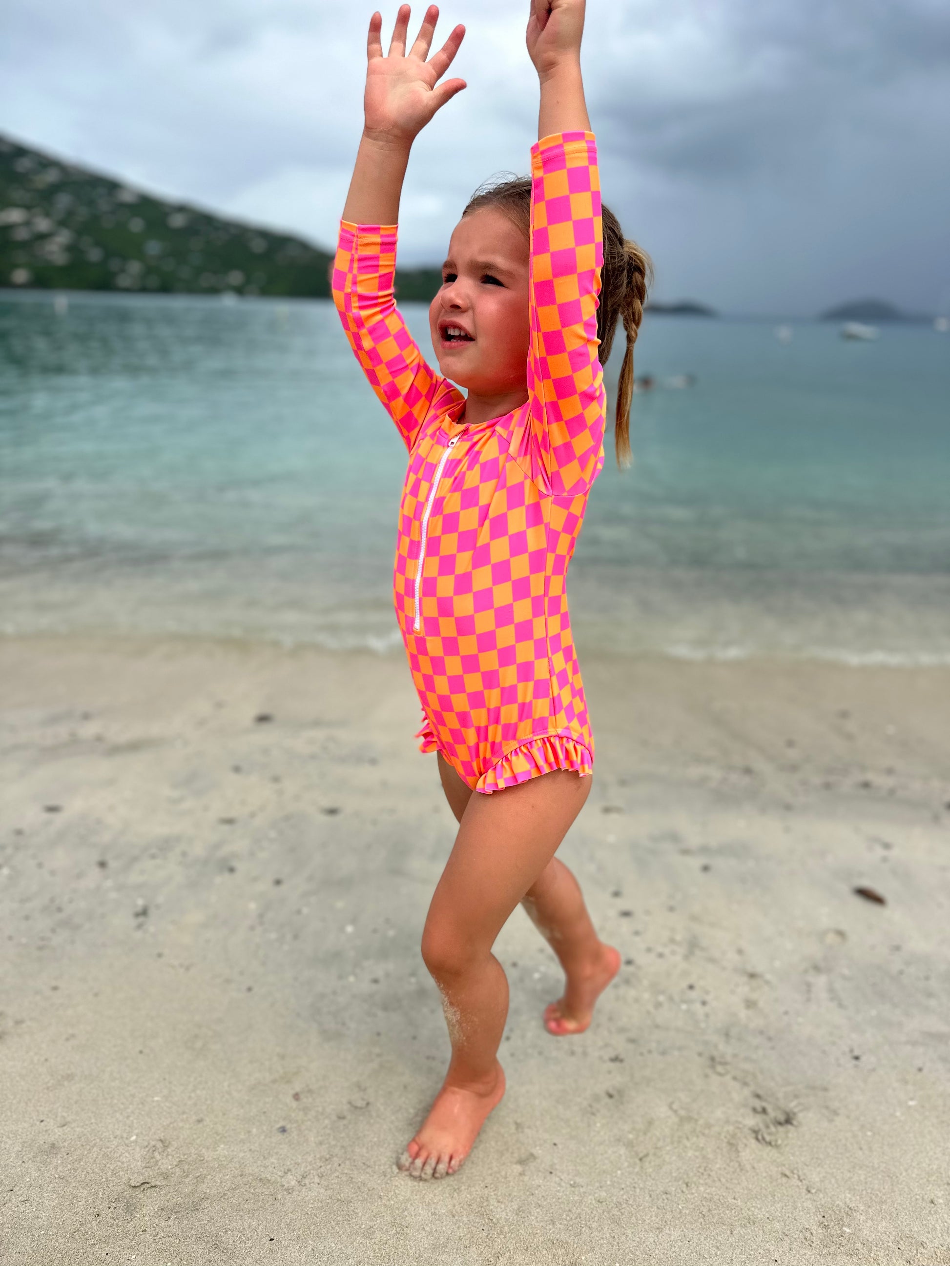 This rash guard bodysuit is the perfect balance between style and sun coverage. It's a must-have for all day play in the sun.