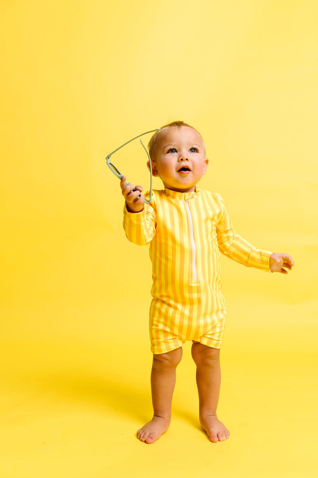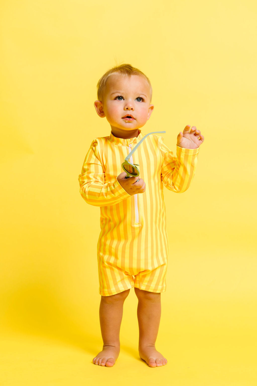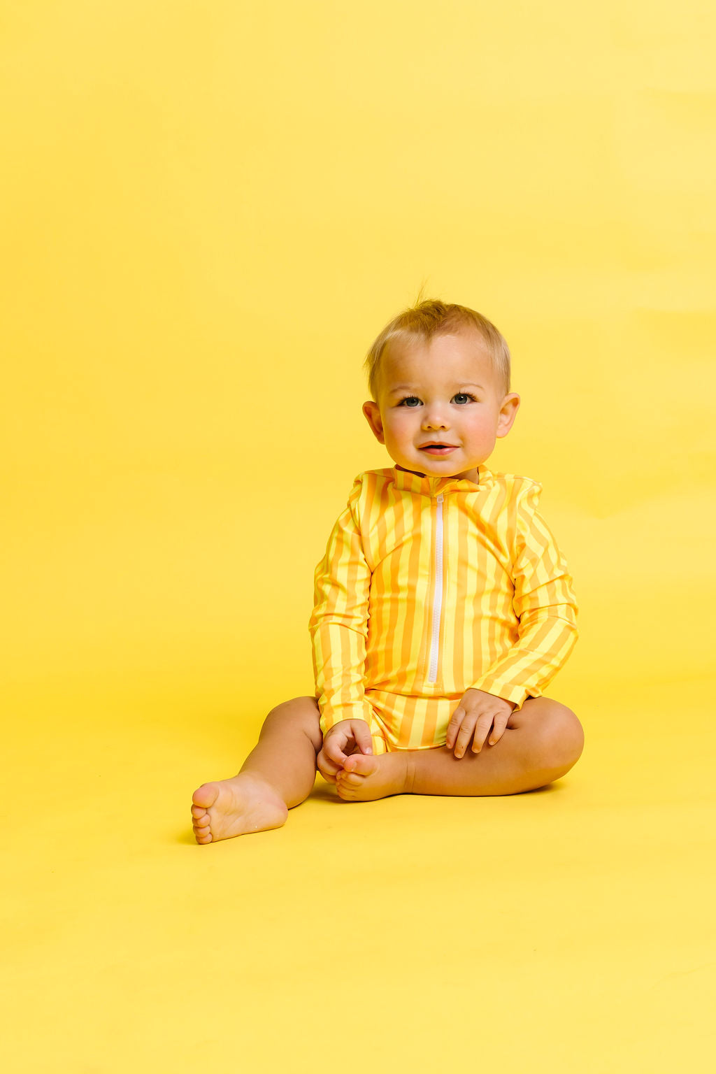 This rash guard bodysuit is the perfect balance between style and sun coverage. It's a must-have for all day play in the sun.