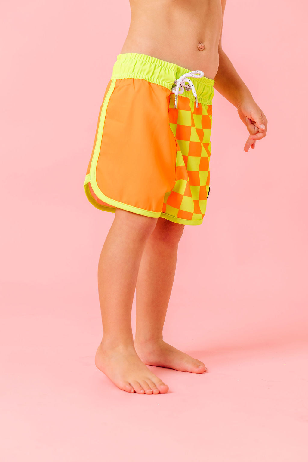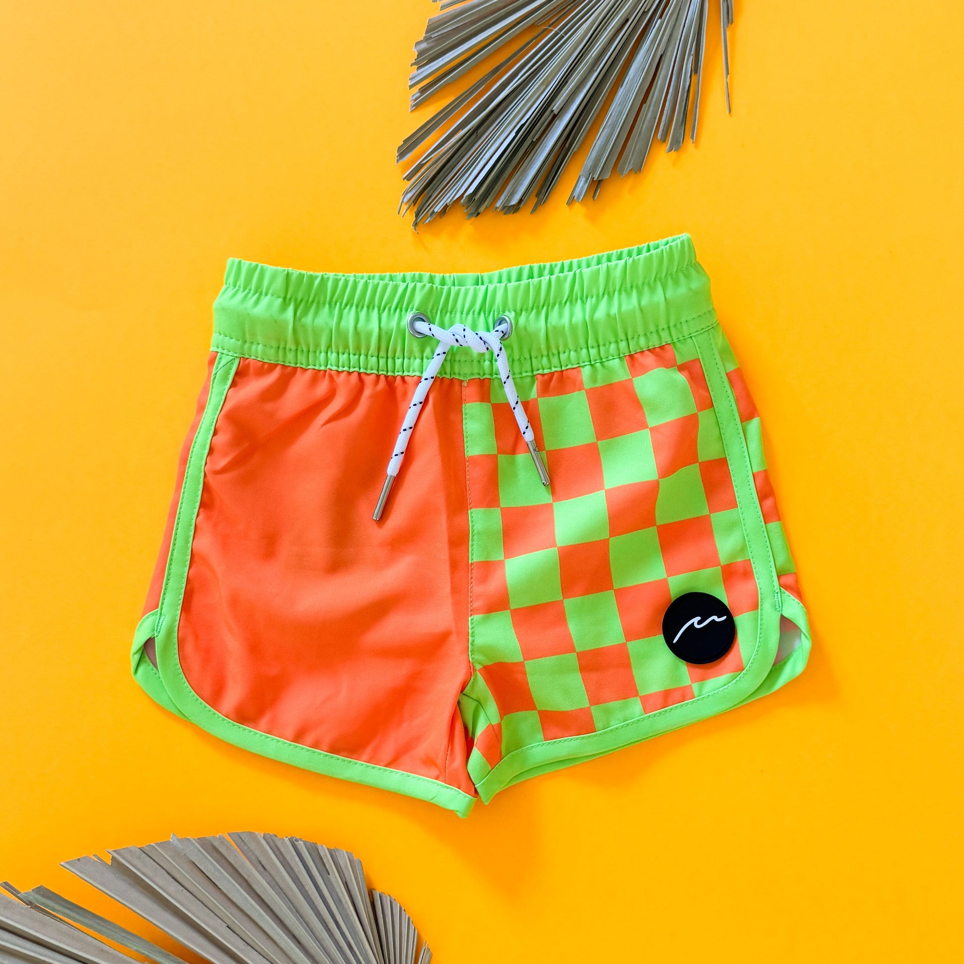 Designed for comfort, style, and high visibility, this suit is made from a premium 90% polyester, 10% spandex blend—giving it the perfect amount of stretch for active kids on the move. The quick-dry fabric keeps them comfortable in and out of the water. The functional drawstring ensures a secure fit, no matter how much they splash and play. These suits run true to size. You can follow our size chart within our main menu tab (Please do!) and decide to size up or down based on your child's percentiles if they are between sizes. These suits are machine washable (avoid extreme hot temps) and we recommend air drying. Now get ready to dive in and GLO!