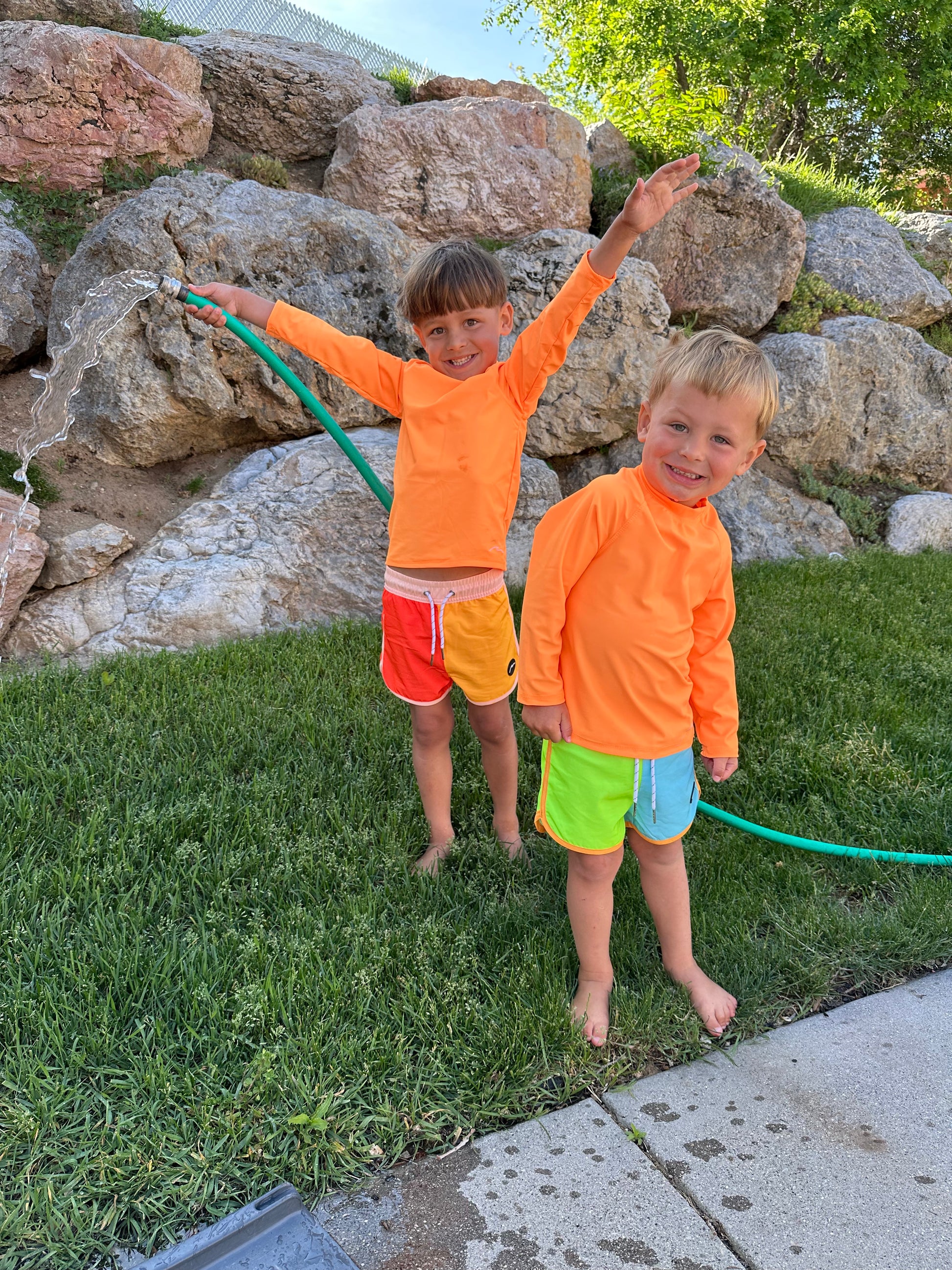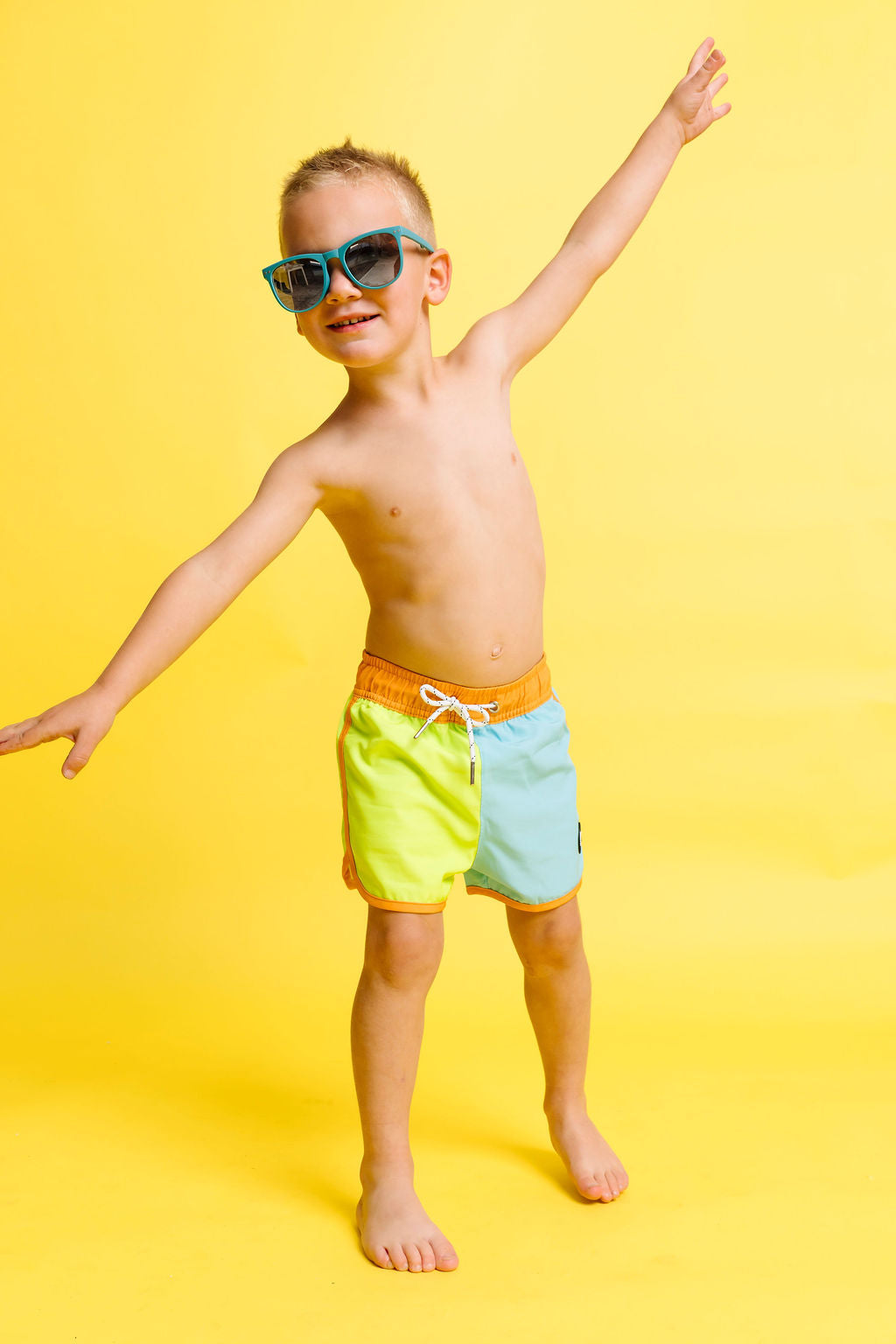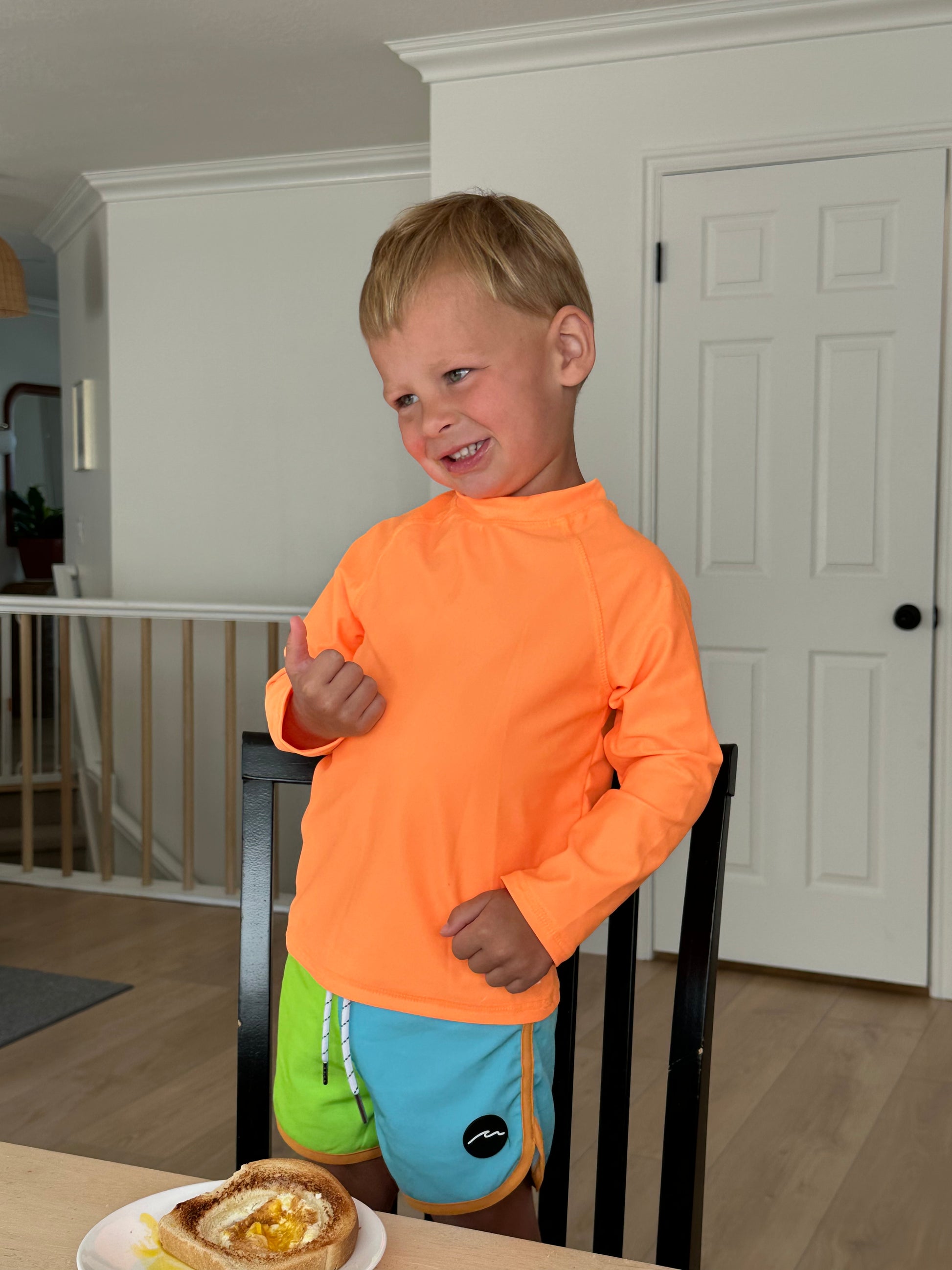 Designed for comfort, style, and high visibility, this suit is made from a premium 90% polyester, 10% spandex blend—giving it the perfect amount of stretch for active kids on the move. The quick-dry fabric keeps them comfortable in and out of the water. The functional drawstring ensures a secure fit, no matter how much they splash and play. These suits run true to size. You can follow our size chart within our main menu tab (Please do!) and decide to size up or down based on your child's percentiles if they are between sizes. These suits are machine washable (avoid extreme hot temps) and we recommend air drying. Now get ready to dive in and GLO!
